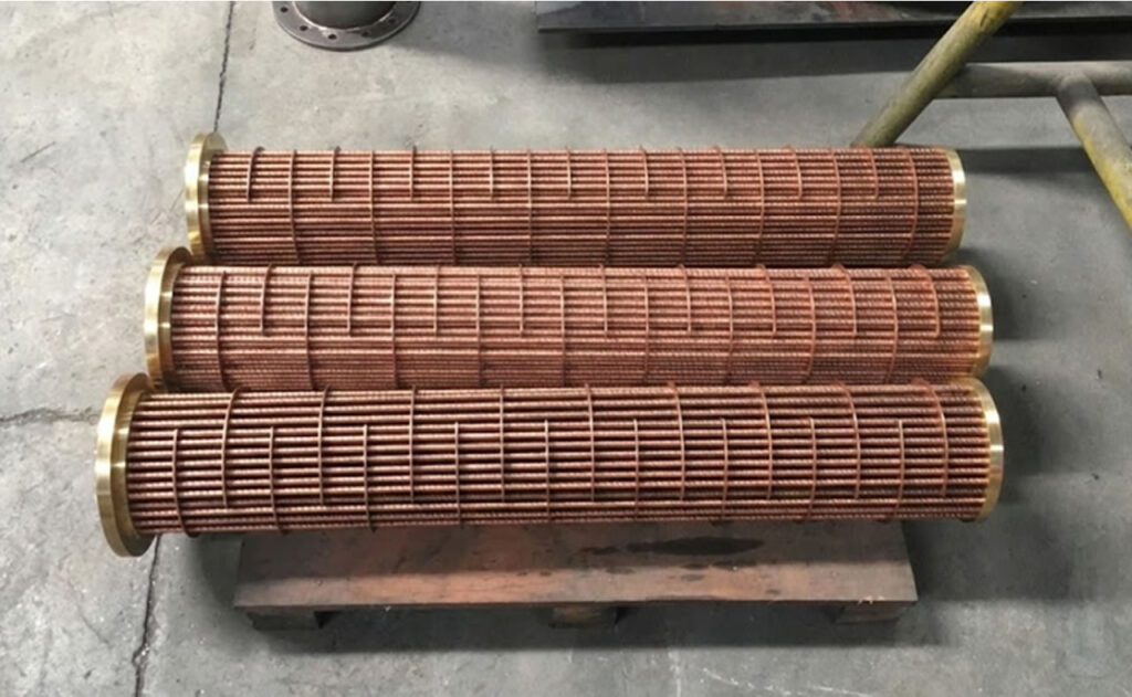 Os difusores internos instalados nos tubos promovem melhor distribuição do fluido, aumento da turbulência e maior eficiência na troca de calor.